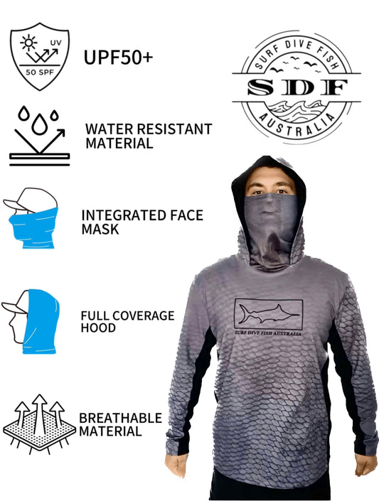 UV Fishing Shirt - UPF50+ Long Sleeve sun protection clothing with gaiter mask and hood