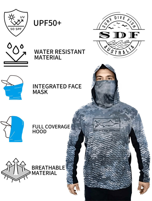 UV Fishing shirt - UPF50+ Long Sleeve Fishing Shirt With Hood And Gaiter Protection