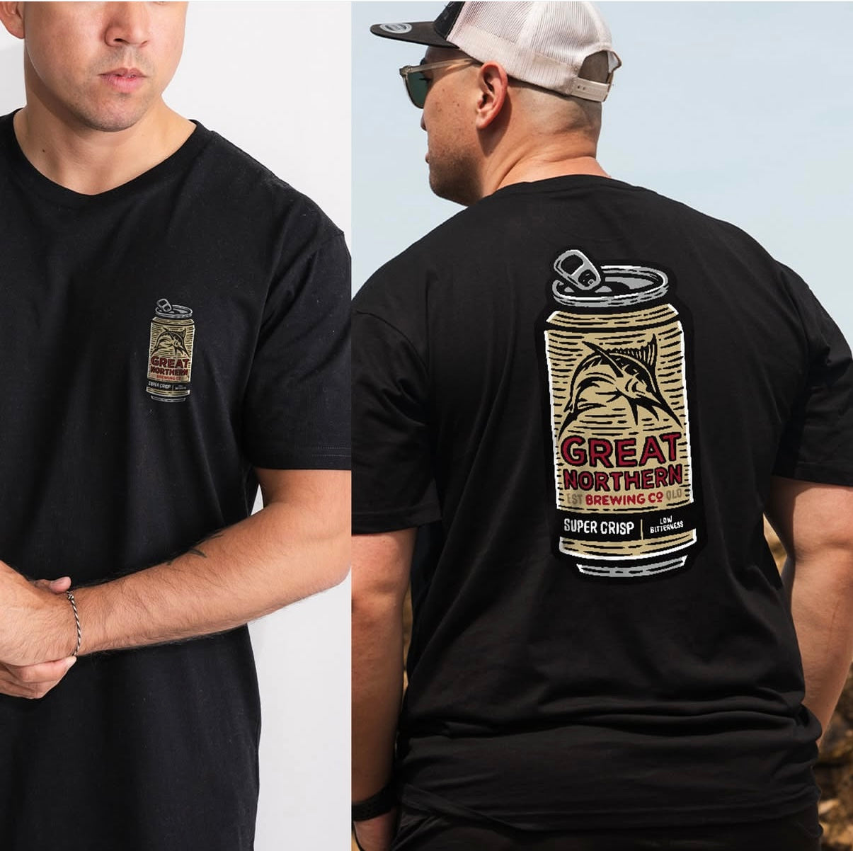 Built for the great outdoors, cold beers, and long weekends with mates. Bold graphics, easy fits, and effortless style—perfect for fishing trips, beach days, and wherever the adventure takes you.