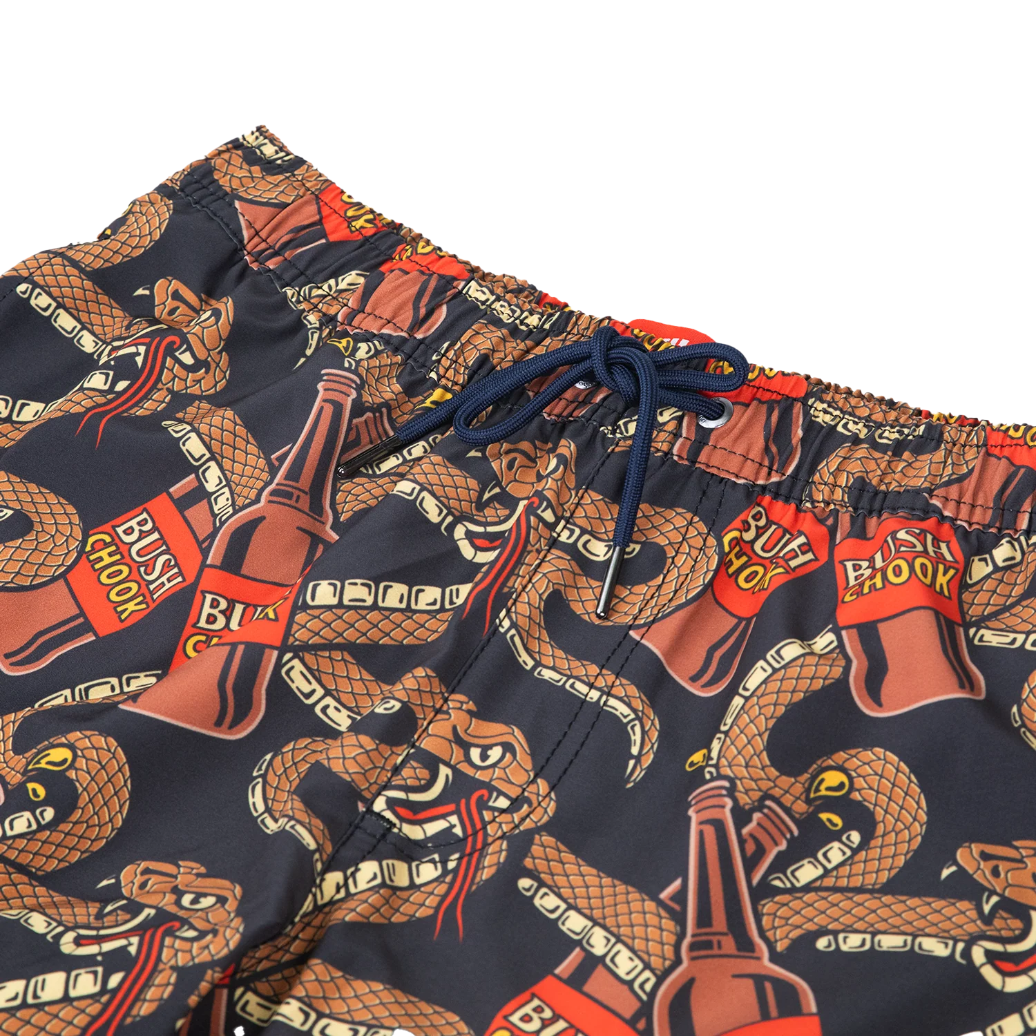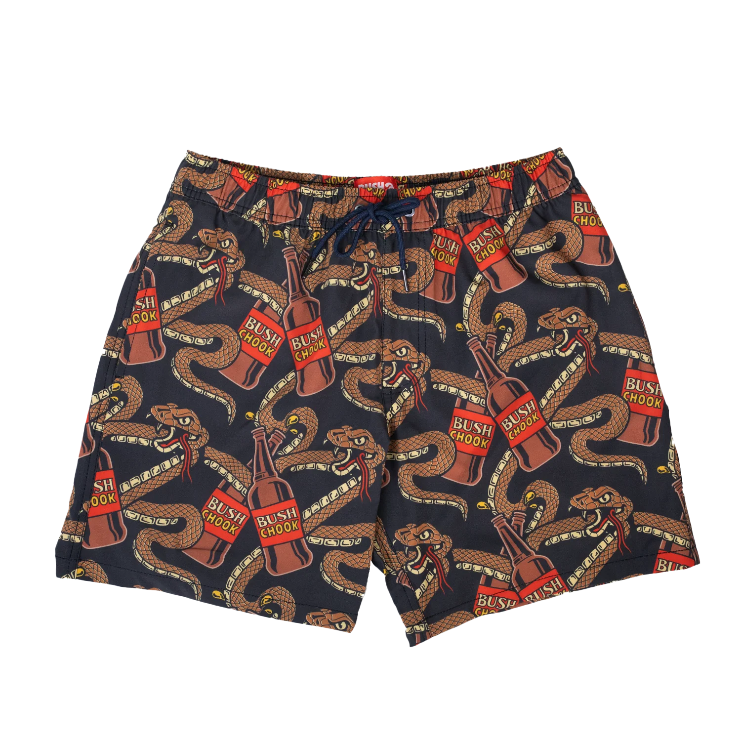 Made with 95% poly & 5% spandex. These 17’ boardies will have enough stretch when bending over to get a chook out of the esky and will dry quickly after a dip. Take the plunge and go for huge local legend vibes with Bush Chook on your rear.