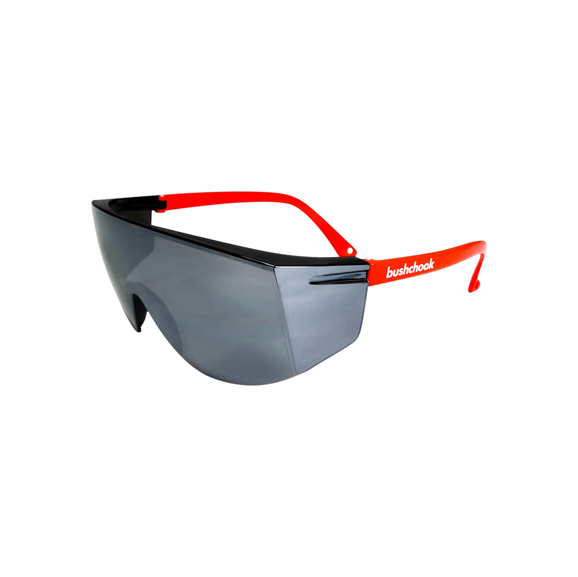 Safety style glasses with red gloss/opaque finish PC arms, polarised
